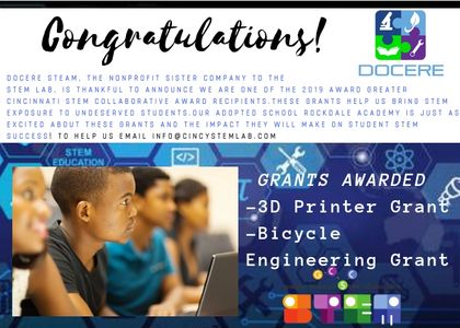 Through Docere STEAM, we are able to deliver much-needed STEM programming to underserved schools and community groups. For two years we have received a STEM Bicycle grant from The Greater Cincinnati STEM Collaborative! This grant has been instrumental in exposing students to mechanical engineering. We partnered with Kemper Road Community Church and the Winton Woods Middle School our first year and Rockdale Academy in Avondale this past year.